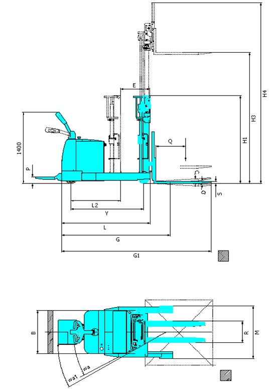 Mast Type門架類型Max.Fork height (貨叉最大高度)Mast Lowered (門架降低時高度)Mast Extended (門架延伸時高度)Free Lift(自由行程)
